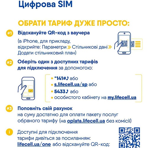 После установки E-Sim пользователь может подключить любой тариф Lifecell на свое усмотрение. Карта уже активирована, и остается только выбрать тарифный план в течение 180 дней. Такой подход позволяет гибко адаптировать связь под личные потребности. Легкая замена старой SIM на E-Sim