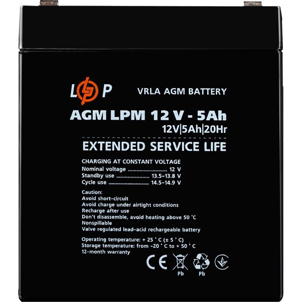 Аккумулятор LogicPower AGM 12V (12V/5Ah/60Wh) (3861)