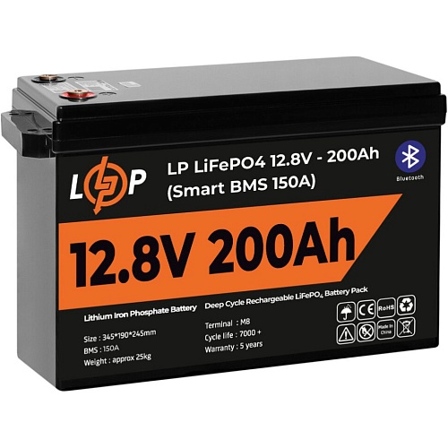 Аккумулятор LogicPower LiFePO4 Smart BT 12V (12.8V/200Ah/2560Wh) (Smart BMS 100А) (20198)