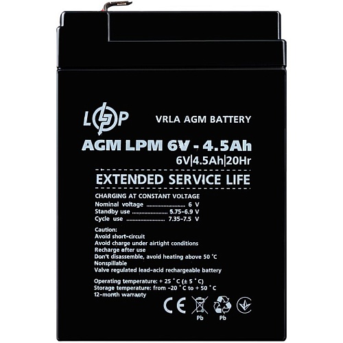 Аккумулятор LogicPower AGM 6V (6V/4.5Ah/27Wh) (3860)