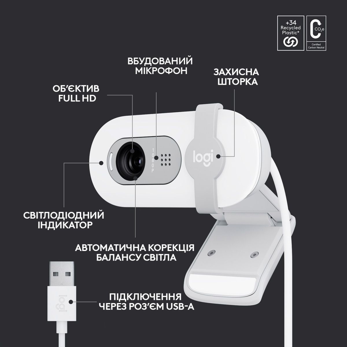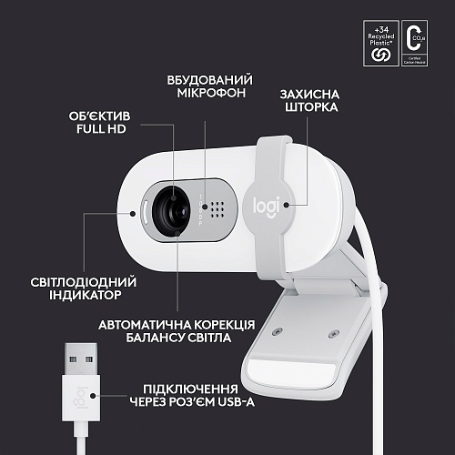 Веб-камера Logitech BRIO 100 White (960-001617)