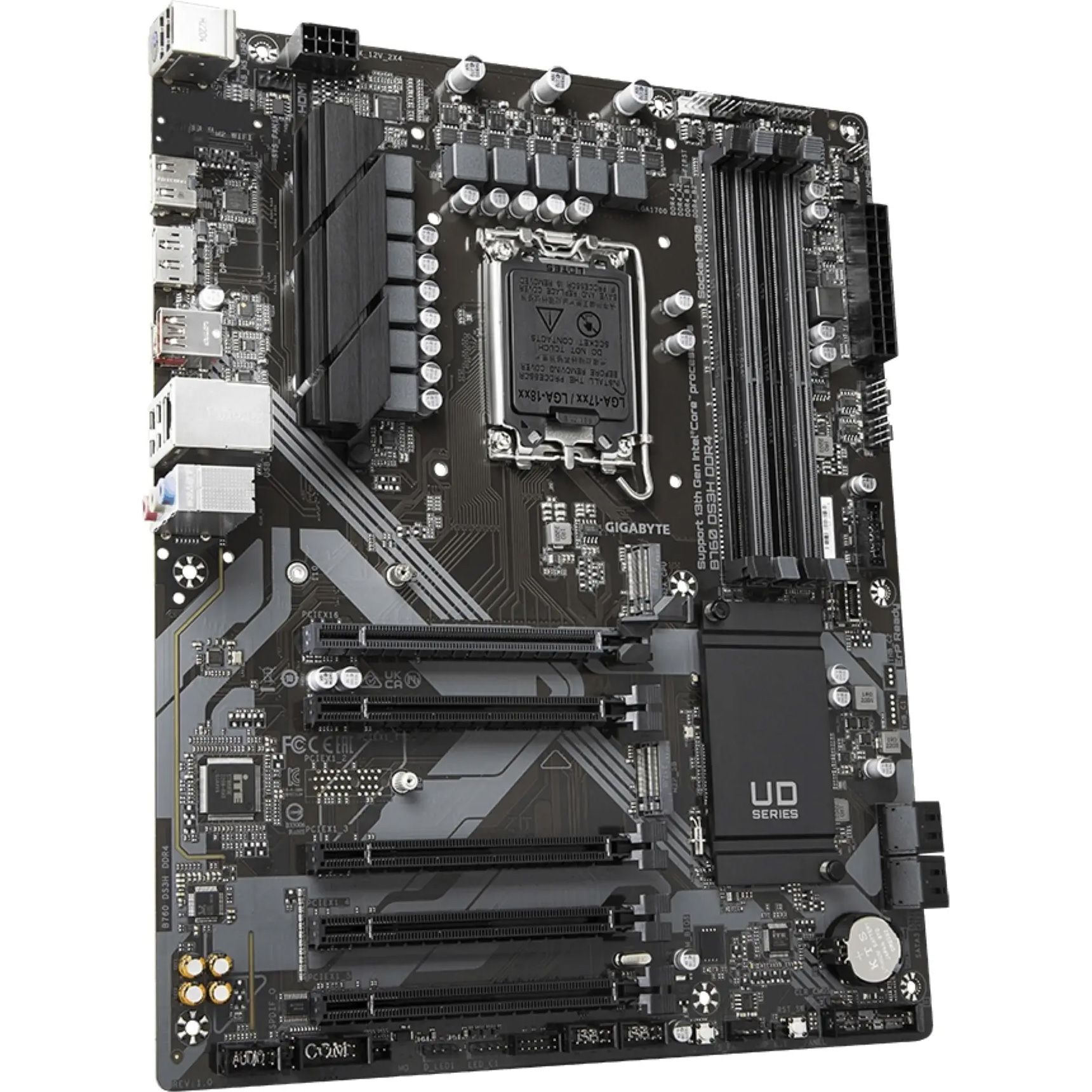 Гибридная цифровая подсистема питания 8+2+1 фаз с MOSFET с низким сопротивлением RDS(on), премиальными дросселями и конденсаторами обеспечивает стабильную работу системы, улучшенную реакцию на изменение нагрузки и минимизацию электрических колебаний. Материнские платы Gigabyte B760 подготовлены к работе с устройствами PCIe 4.0, обеспечивающими до трех раз большую пропускную способность по сравнению с PCIe 3.0, а использование печатной платы с низким импедансом помогает сохранять целостность сигнала и достигать максимальной производительности.
