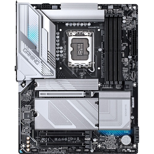 Стильный и агрессивный дизайн Gigabyte B860 Gaming X WIFI6E сразу привлекает внимание. Подсветка RGB Fusion позволяет настроить освещение в соответствии с вашим вкусом, создавая уникальную атмосферу за вашим игровым столом. Плата имеет черно-серебристую цветовую гамму, которая идеально впишется в любой корпус.