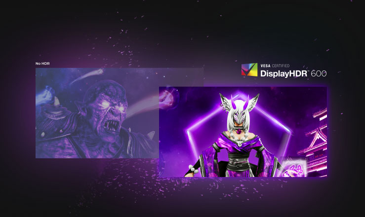 Сертификация VESA DisplayHDR 600 гарантирует высокий уровень яркости и улучшенную контрастность изображения. Локальное затемнение позволяет глубже передавать темные сцены и выделять светлые участки без потери деталей. В результате игры и фильмы выглядят более объемными, реалистичными и визуально насыщенными.