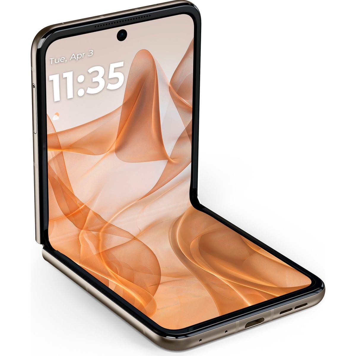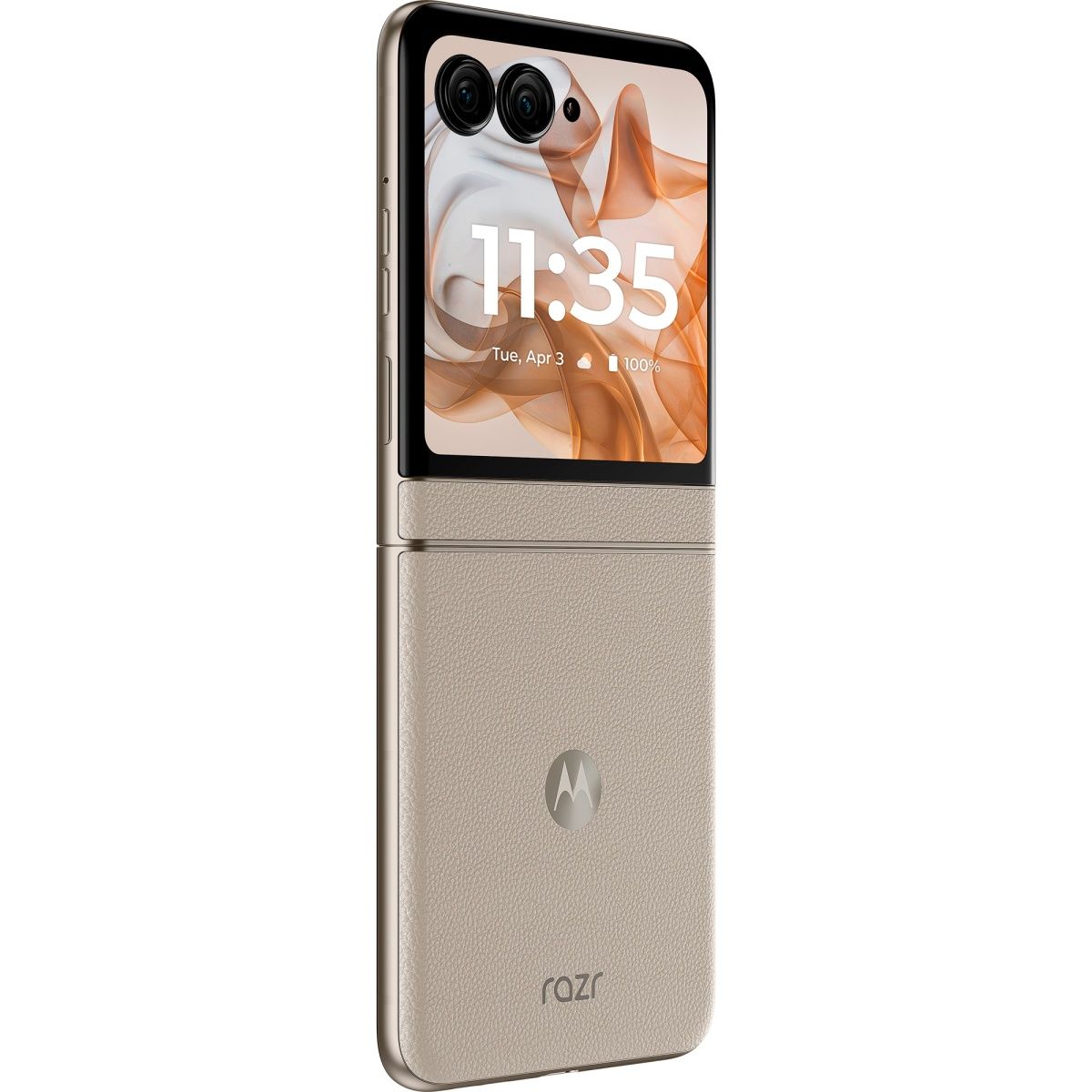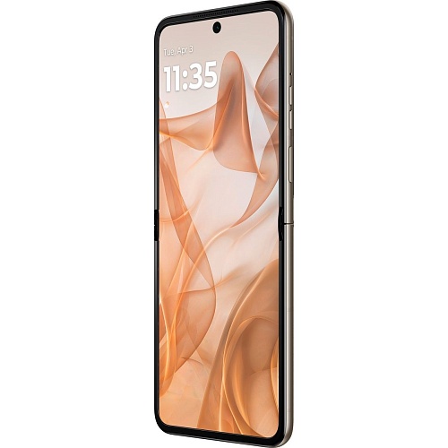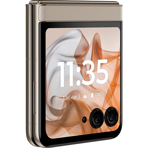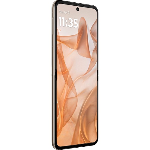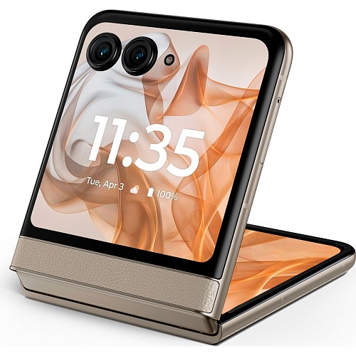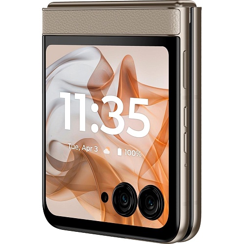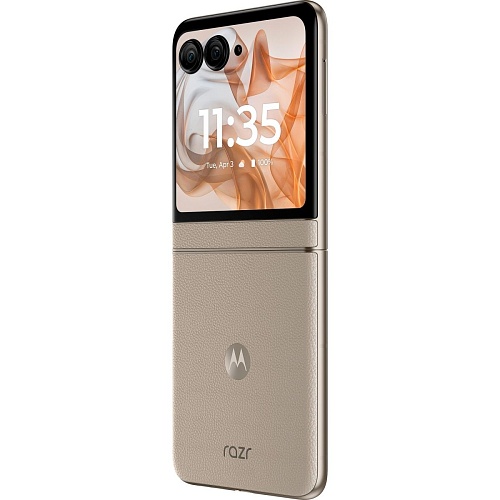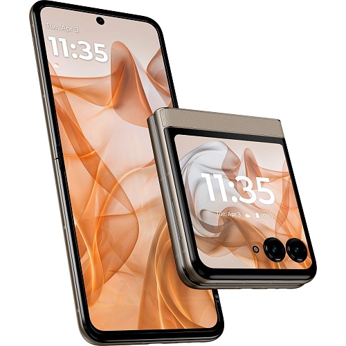 Motorola Razr 50 сочетает стиль ретро с современными технологиями. Смартфон представлен в ярких цветах, таких как Koala Grey, Spritz Orange, Beach Sand, с отделкой из кожи. Этот дизайн подчеркивает элегантность и уникальность устройства, сохраняя его практичность и компактность.