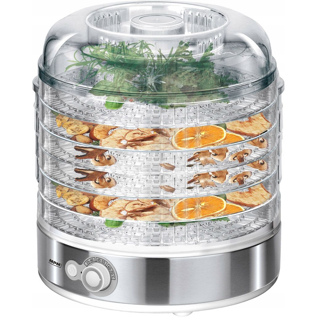 С пятью поддонами диаметром 31 см, MPM MSG-11 позволяет сушить различные овощи и фрукты одновременно, не беспокоясь о смешении ароматов. Герметичная крышка надежно удерживает ароматы внутри, а тихий рабочий прибор не создает дополнительных удобств в вашем доме.