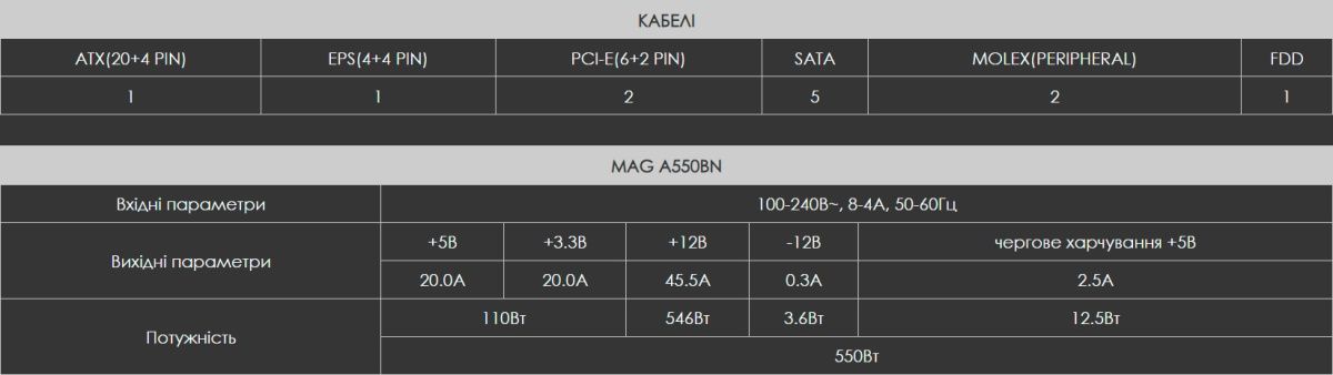 Блок питания MSI MAG A550BN