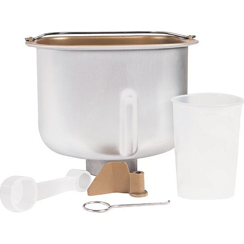 Комплектация | Хлебопечь • форма для выпечки • мерный стаканчик • мерная ложка • насадка для замешивания теста • крючок для извлечения хлеба из формы |