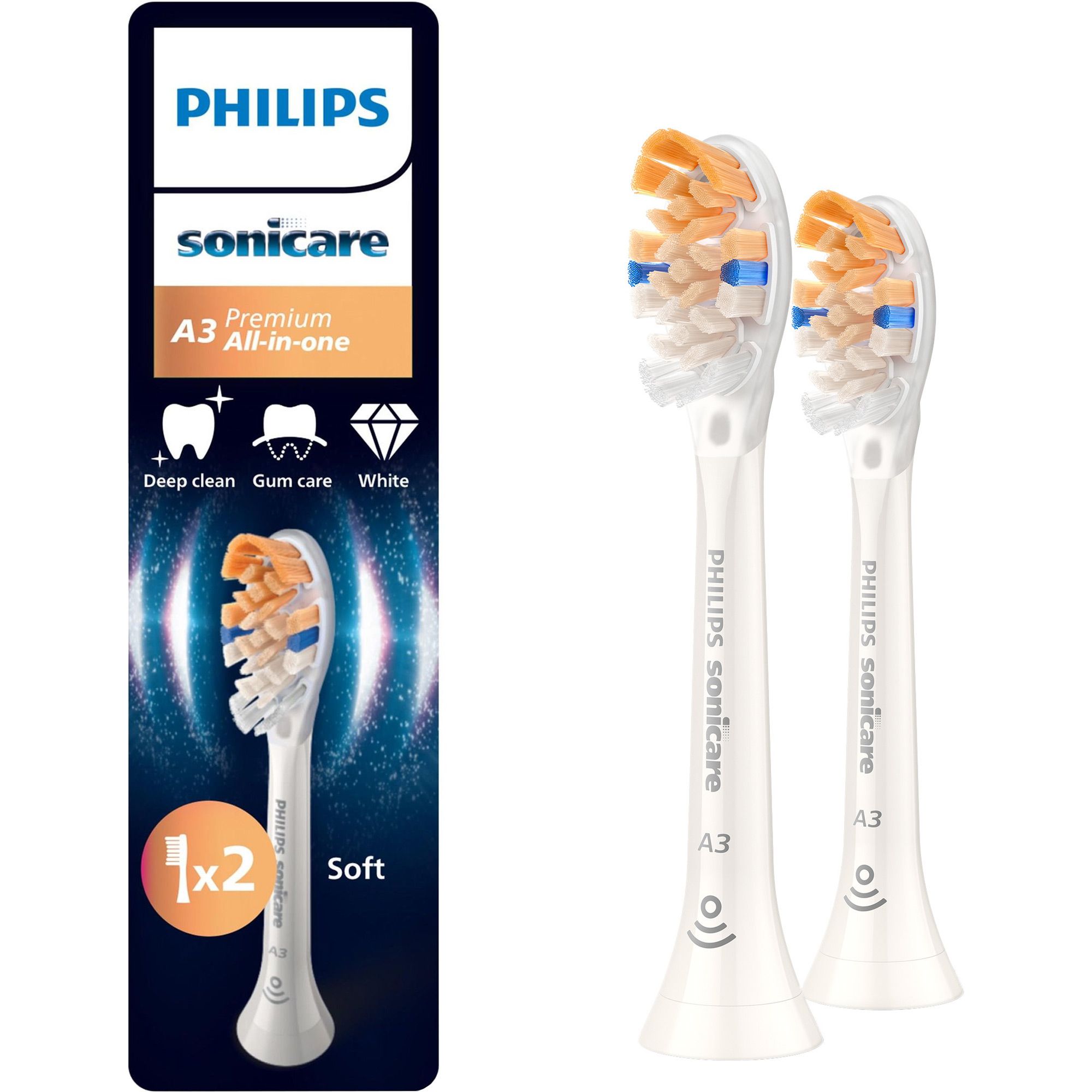 Насадка Philips Sonicare A3 Premium All-in-One сочетает в себе три ключевых преимущества — эффективное удаление налета, борьбу с пятнами и поддержание здоровья десен. Благодаря технологии Sonicare зубные щетки выполняют до 62 000 движений щетинок в минуту, создавая динамический поток жидкости, который достигает промежутков между зубами и линии десны. Это обеспечивает ощущение профессиональной чистоты даже дома. Насадка легко устанавливается и снимается, совместима со всеми съемными ручками Philips Sonicare, что делает ее универсальным решением для ежедневного использования.