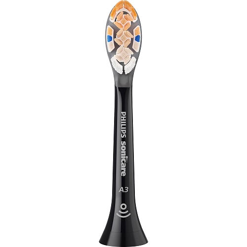 Насадка Philips Sonicare A3 Premium All-in-One сочетает в себе три ключевых преимущества — эффективное удаление налета, борьбу с пятнами и поддержание здоровья десен. Благодаря технологии Sonicare зубные щетки выполняют до 62 000 движений щетинок в минуту, создавая динамический поток жидкости, который достигает промежутков между зубами и линии десны. Это обеспечивает ощущение профессиональной чистоты даже дома. Насадка легко устанавливается и снимается, совместима со всеми съемными ручками Philips Sonicare, что делает ее универсальным решением для ежедневного использования.