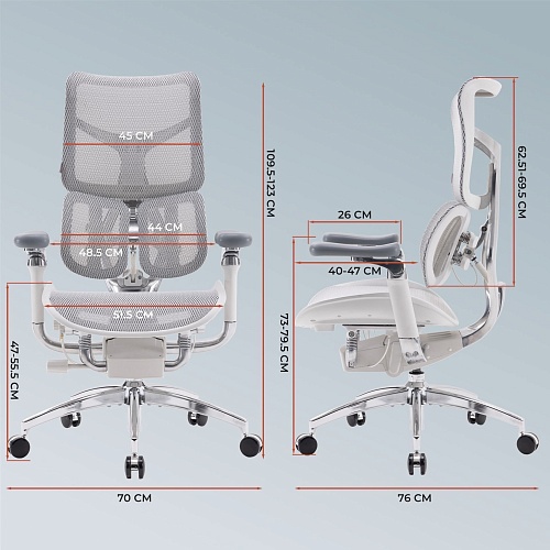 | Регулировка | Высота системы поддержки поясницы, Высота подлокотников, Поворот поясничной подушки, Высота поясничной подушки, Высота сиденья, Глубина сиденья, Глубина подлокотников, Направления подлокотников, Расстояние подлокотников, Степень жесткости качания, Угол наклона подлокотников, Угол наклона системы поддержки поясницы, Угол наклона спинки, Угол поворота подлокотников |