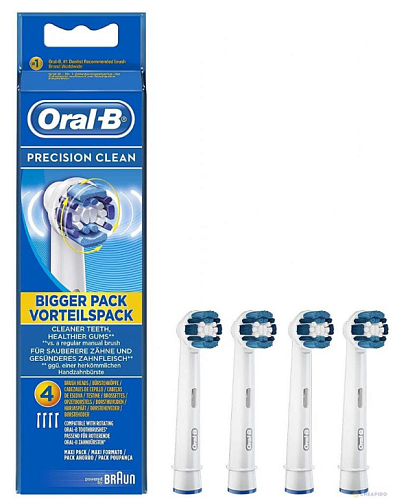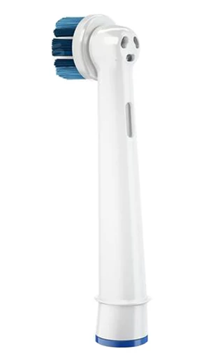 Пребывая в тесном сотрудничестве с Американской Стоматологической Ассоциацией (ADA), ведущие инженеры и дизайнеры компании Oral-B Braun, разрабатывают товар, отвечающий высоким стандартам качества. Вся продукция проходит тщательный контроль и отбор. Щетинки «Индикатор» (Indicator) – голубого цвета, будут нам сигнализировать об изменении насадки, обесцвечившись наполовину. Они созданы по своей уникальной запатентованной технологии. Дело в том, что окрашивание одной такой маленькой щетинки происходит «кольцевым» способом. И для того чтобы краска высвобождалась из щетинки, должны проводиться механические движения. Это очень помогает контролировать детей. Маленький размер чистящей головки насадки Precision Clean EB 20 обеспечивает максимальный контакт с поверхностью зубов. Помогает охватывать каждый зуб по отдельности и тщательно его очищать.