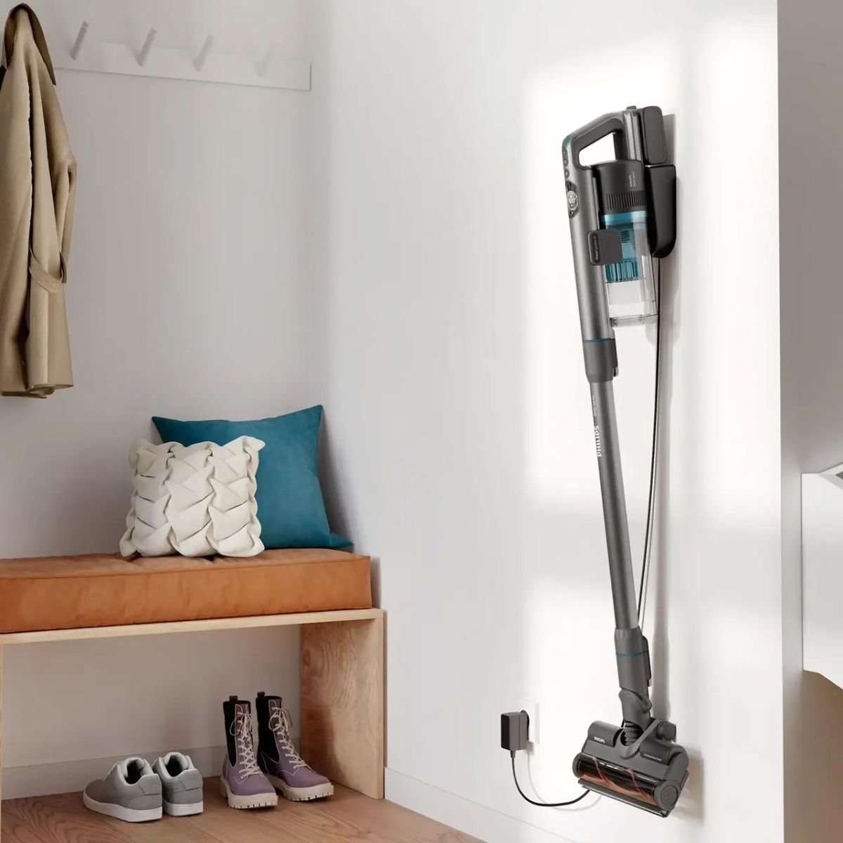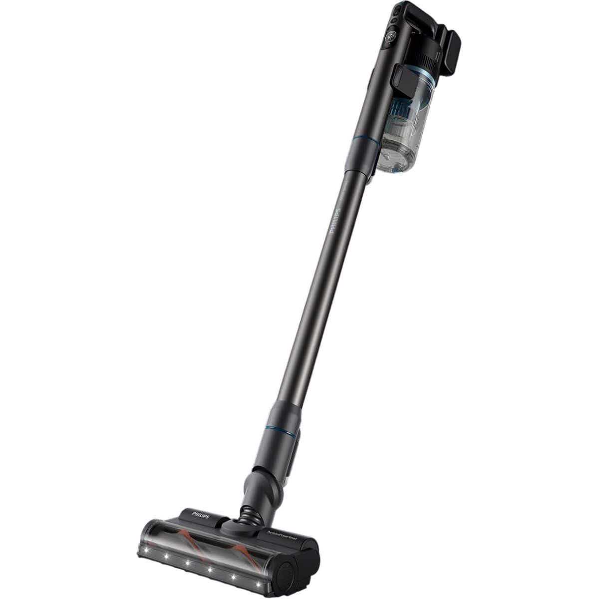 Светодиодная насадка TriActive Smart определяет тип покрытия и автоматически настраивает силу всасывания. Мощная очистка обеспечивается тройным действием, которое удаляет до 99,9% пыли за один проход. Подсветка помогает обнаружить пыль в темных зонах, а конструкция насадки позволяет убирать вплотную к плинтусам. Пользователь может выбирать один из трех уровней мощности для более гибкого управления.