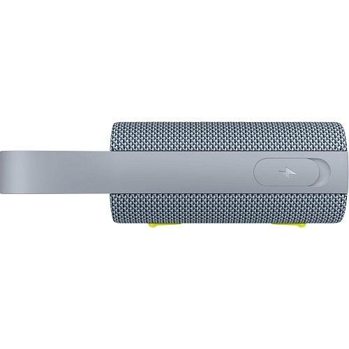 Колонка подстраивается под вас: лежит горизонтально для максимальной устойчивости или стоит вертикально, когда нужно сэкономить место. Шероховатая поверхность и резиновый ремешок надёжно фиксируют её в руке, а встроенный карабин легко крепится к рюкзаку или поясу.