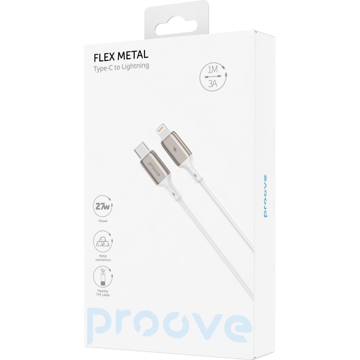 Кабель Proove Flex Metal USB-C to Lightning 27W 1m White (CCFM27002102)
