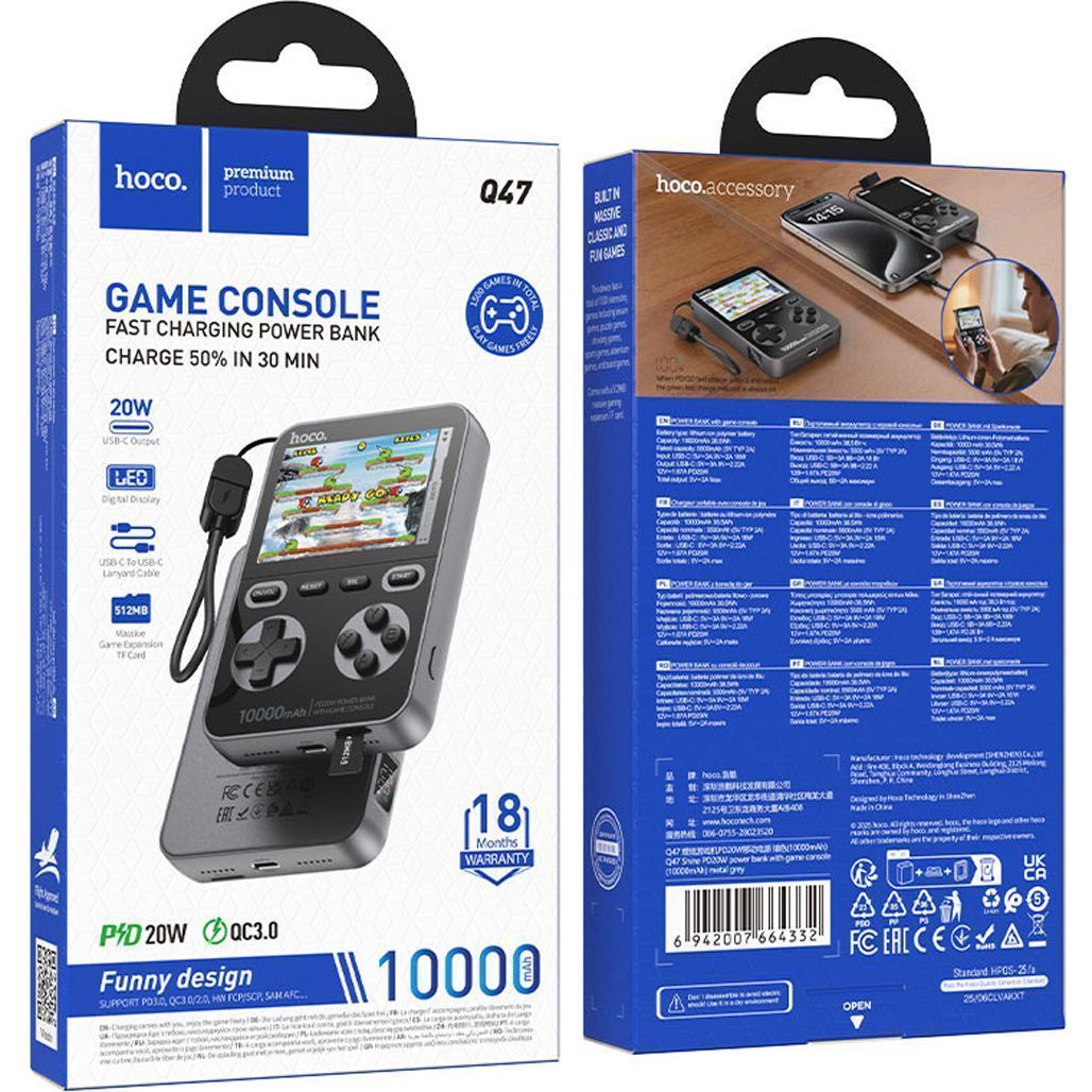 Ретро игровая приставка Hoco Q47 1500 Games + Power Bank Black (664332)
