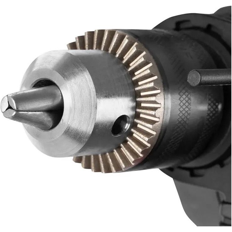 Комплектация | Дрель ударная • рукоятка • ограничитель глубины сверления • ключ патронный • документация |