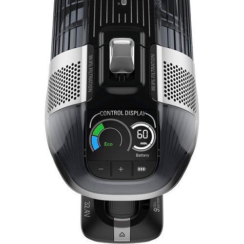 Гибкость и маневренность пылесоса позволяют пользователям с легкостью очищать не только напольные покрытия, но и труднодоступные места, включая пространство под мебелью и уголки со слабым освещением благодаря системе Power LED. Дополнительно, интеллектуальный дисплей Smart Control обеспечивает информативное управление, показывая остаток заряда батареи и оповещая о необходимости очистки фильтра, а также позволяет пользователям настроить мощность всасывания для конкретных задач.
