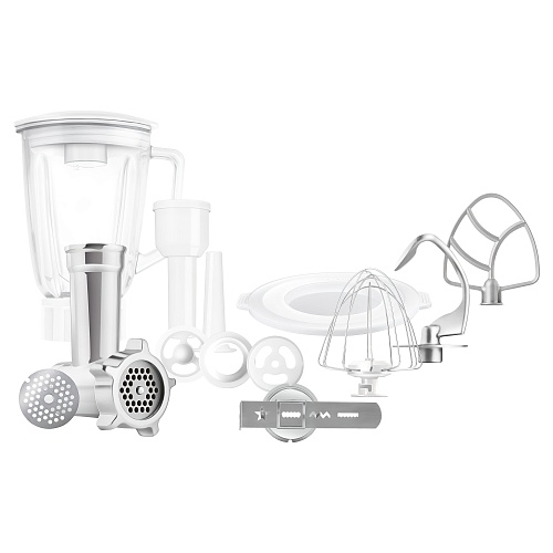 В комплект с комбайном входят различные насадки, помогающие готовить все от выпечки до домашних колбасок. В частности, в наборе есть: