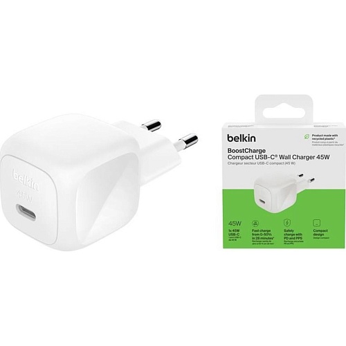 Сетевое зарядное устройство Belkin BoostCharge Compact USB-C PD 45W White (WCA013KQWH)