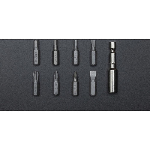 Комплектация | Дрель-шуруповерт • набор из 8 хром-ванадиевых бит • 50 мм магнитный удлинительный стержень |