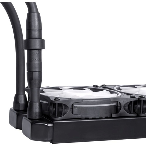 Alphacool Eisbaer Aurora 360 легко интегрируется в вашу систему благодаря удобному управлению и подключению. В комплект поставки входит Y-кабель, позволяющий подключить два или три вентилятора к одному разъему на материнской плате. Подсветка RGB подключается через 3-контактный разъем JST, а для удобства подключения можно использовать встроенный Y-адаптер. Насос системы использует 3-контактный разъем Molex, который также можно подключить к материнской плате. Это упрощает процесс установки и подключения, а также делает систему совместимой с различными материнскими платами и контроллерами.