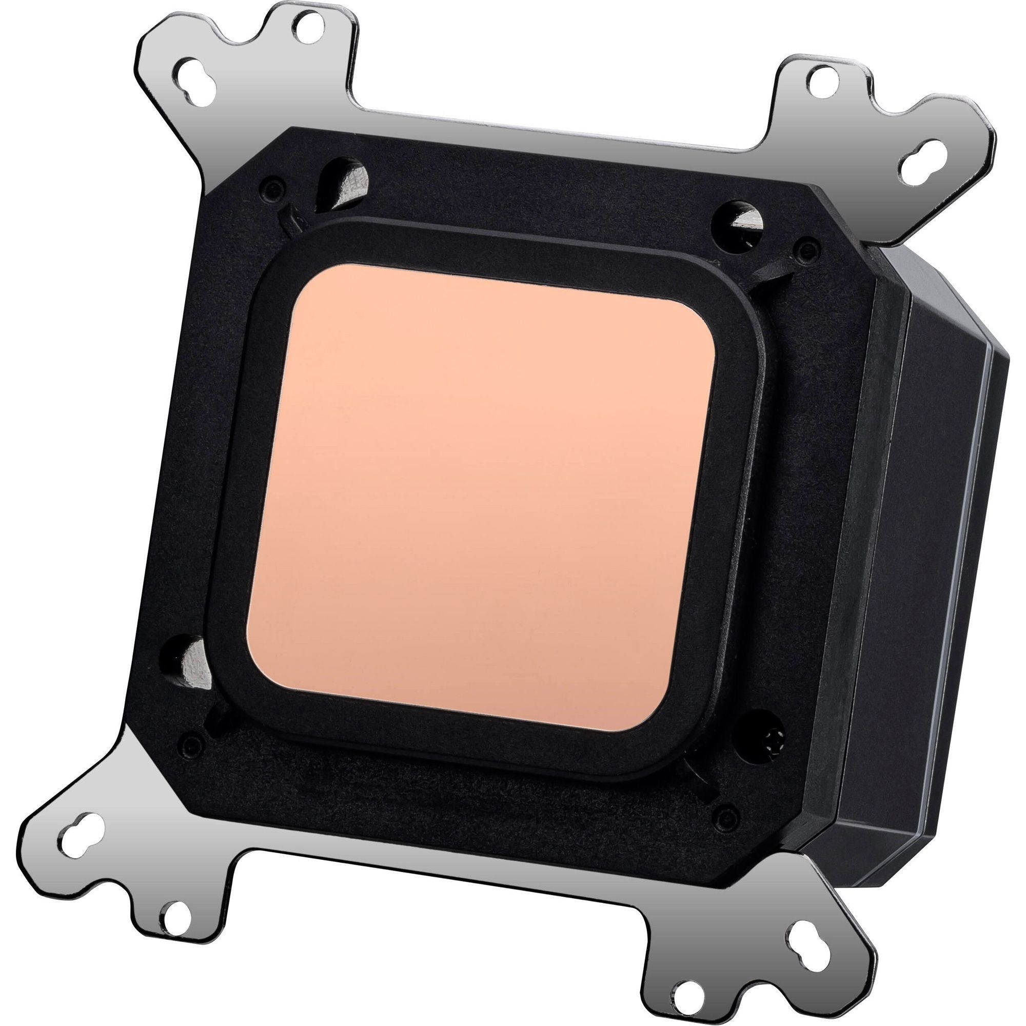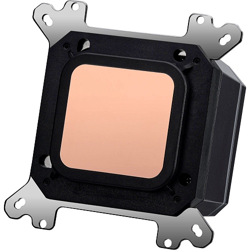 Контактная пластина нового поколения изготовлена из меди и не имеет традиционных отверстий для винтов, что повышает герметичность конструкции. Благодаря использованию микроканалов с шагом 0,1 мм тепло более эффективно отводится от поверхности процессора. Такая конструкция способствует стабильной работе системы и повышает эффективность охлаждения под нагрузкой.