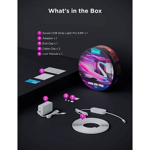 Светодиодная лента Govee H61E5 COB Strip Light Pro RGBIC+W 3м (H61E53D1)