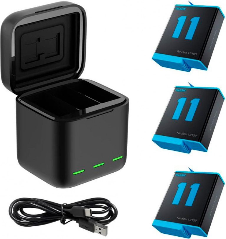 Зарядное устройство Telesin + 3 аккумулятора для GoPro 12/11/10/9 (GP-BNC-902)