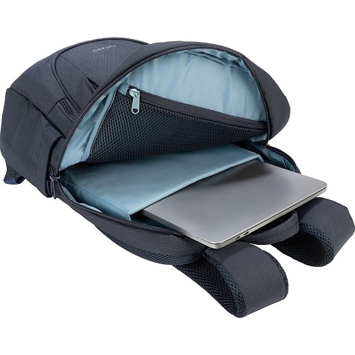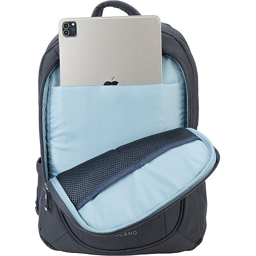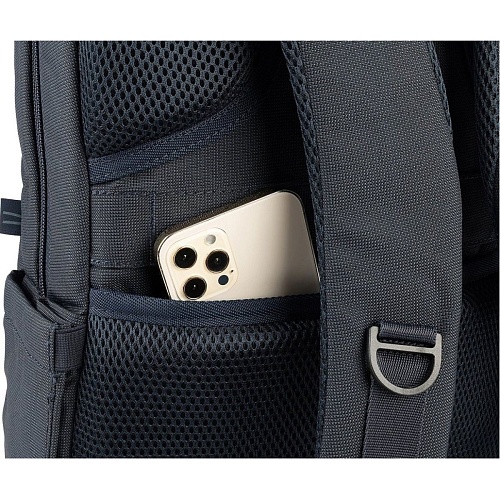 Внутреннее пространство рюкзака включает специальные отделения для ноутбука и планшета, а также дополнительные карманы на передней панели для быстрого доступа к необходимым мелочам. Задний карман с защитой и ремешок для крепления к чемодану повышают удобство использования в поездках.