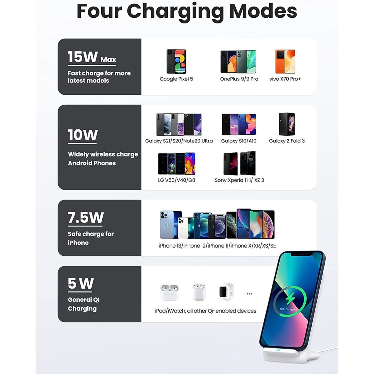 Беспроводное зарядное устройство Ugreen Wireless Charger Stand 15W (CD221/80576) White