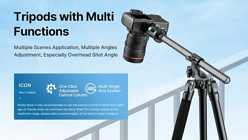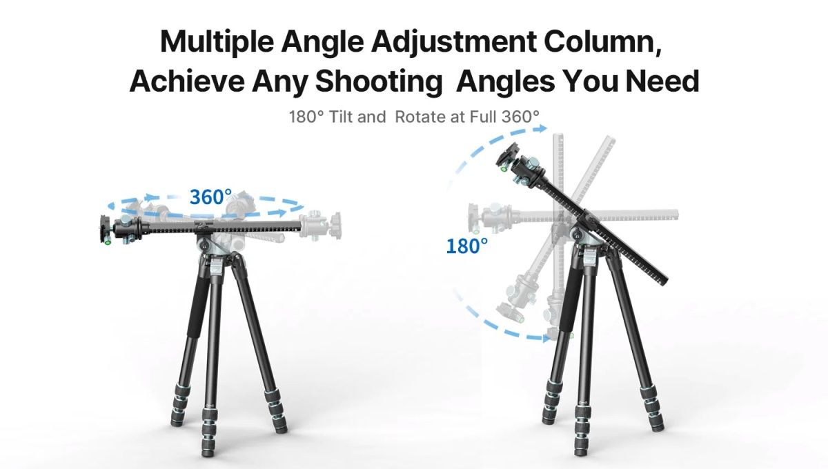 С штативом Ulanzi MT-59 вы сможете запечатлеть все детали и создать потрясающие панорамные, малоугольные и макросъемки. Центральная колонна может поворачиваться на 180 градусов в вертикальном положении и на 360 градусов в горизонтальном положении, предоставляя вам полную свободу кадрирования.