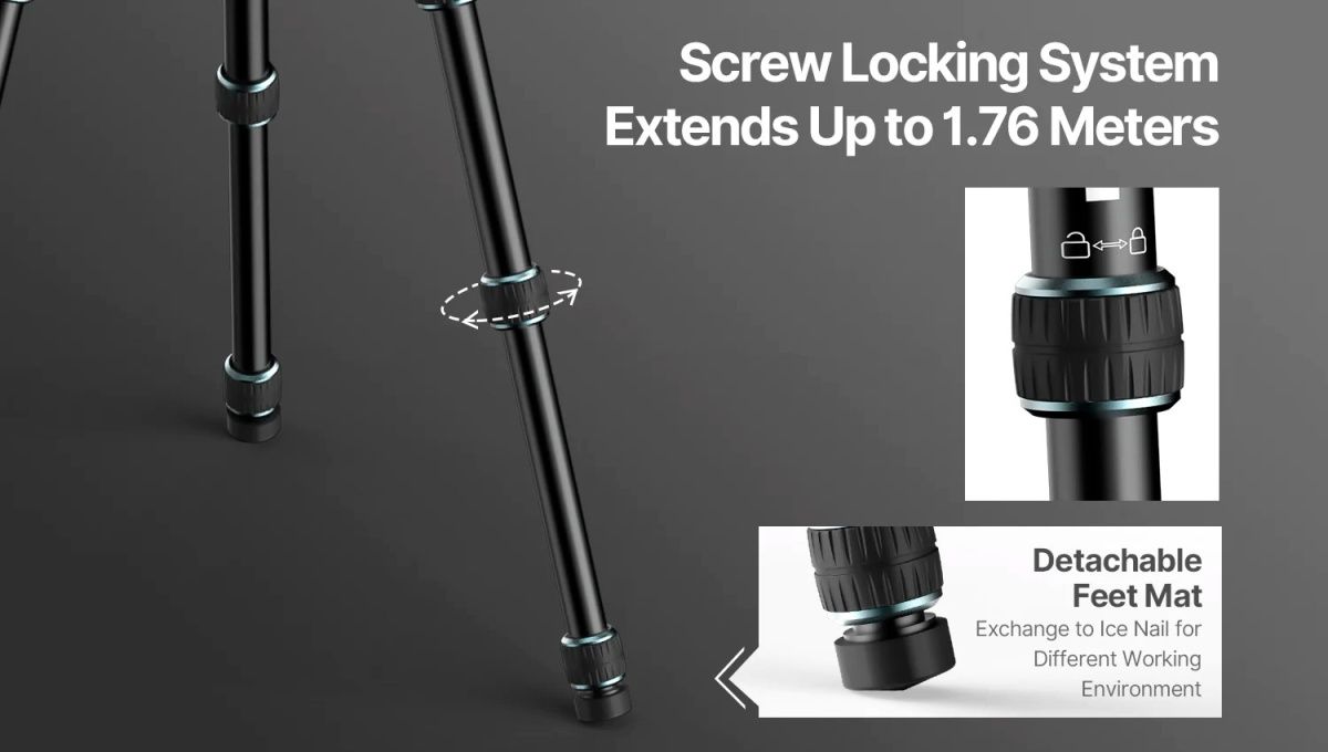 Центральная шаровая головка штатива Ulanzi MT-59 обеспечивает плавное и точное кадрирование. С грузоподъемностью до 15 кг вы можете быть уверены, что ваша фотокамера и дополнительное оборудование будут надежно удерживаться.