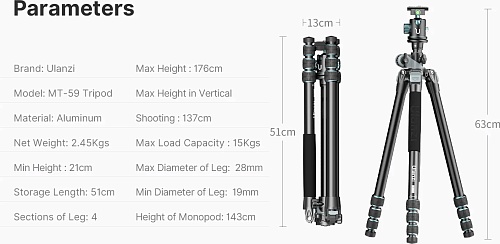 Штатив Ulanzi MT-59 - идеальный выбор для профессиональных макрофотографов и всех, кто стремится запечатлеть каждый кадр с абсолютной точностью. Этот туристический штатив прост в транспортировке и обладает универсальными возможностями, чтобы воплотить ваше творчество.