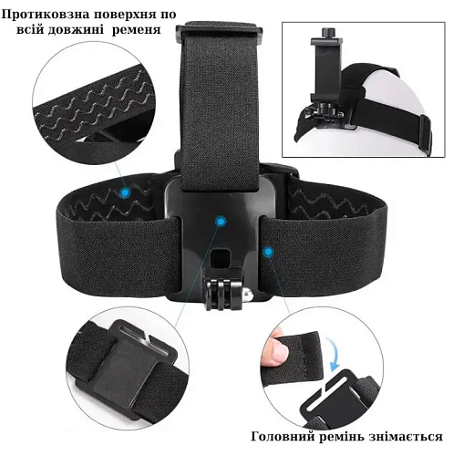 Комплектация | Крепление на голову • 2х переходник для экшн камеры • 2х винт • держатель смартфона • крепление на грудь • J-образное крепление |