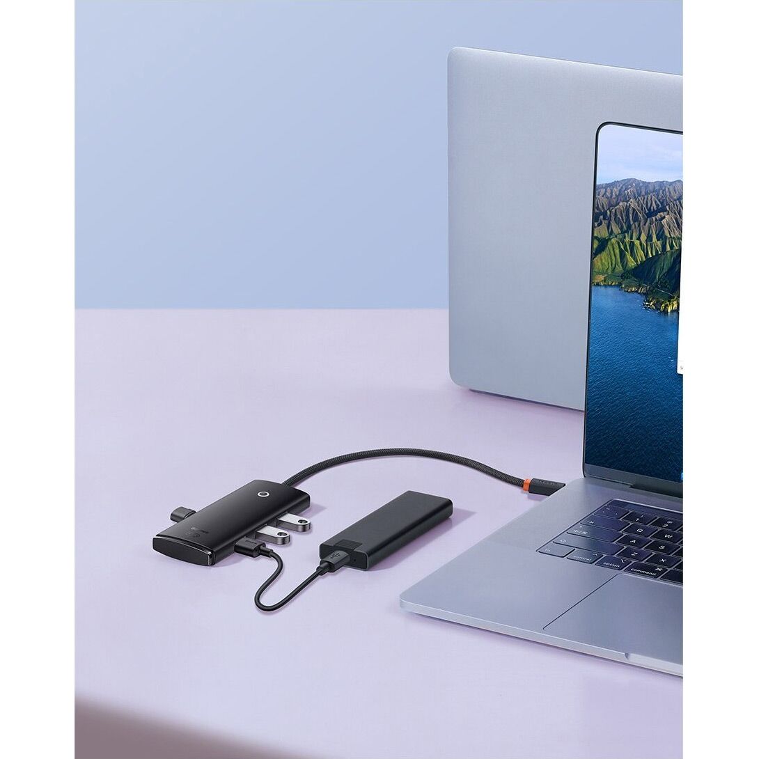 Подключение USB‑C‑хаба Baseus Lite Series 4‑in‑1 осуществляется через порт USB‑C, что обеспечивает стабильную передачу энергии и данных без необходимости установки дополнительных драйверов. Это делает устройство максимально универсальным и совместимым с широким спектром современных устройств, включая ноутбуки на Windows или macOS, планшеты, смартфоны и другую технику, имеющую USB‑C‑интерфейс. Кроме того, хаб поддерживает функцию OTG, позволяющую подключать и обмениваться данными со смартфонами или планшетами напрямую без использования компьютера. Эта простота и универсальность делают хаб незаменимым аксессуаром как для работы, так и развлечений.