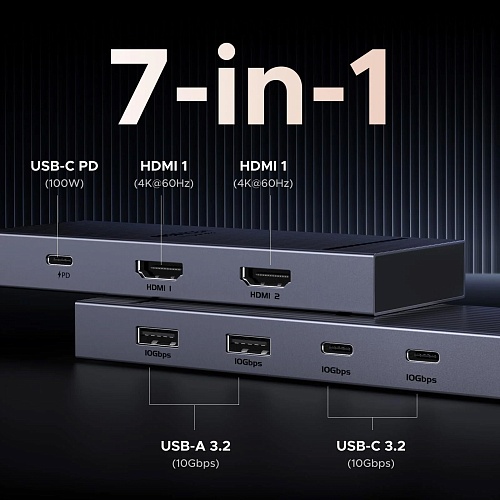 USB-хаб Ugreen Revodok Pro 207 CM880 7-in-1 USB-C (45365)
