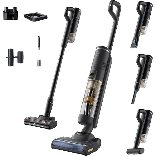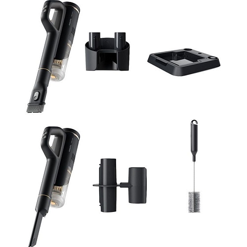 Комплектация | Блок питания • модуль для влажной уборки с насадкой AquaSpin • ручка пылесоса для влажной уборки • модуль для сухой уборки с контейнером для пыли • удлинительная центральная трубка • светодиодная насадка для сухой уборки • моторизованная минитурбощетка • щелевая насадка • комбинированная насадка 2-в-1 • док-станция очистки и хранения • лоток для очистки после использования • настенный крепеж • органайзер для насадок • адаптер питания • щеточка для очистки • документация |