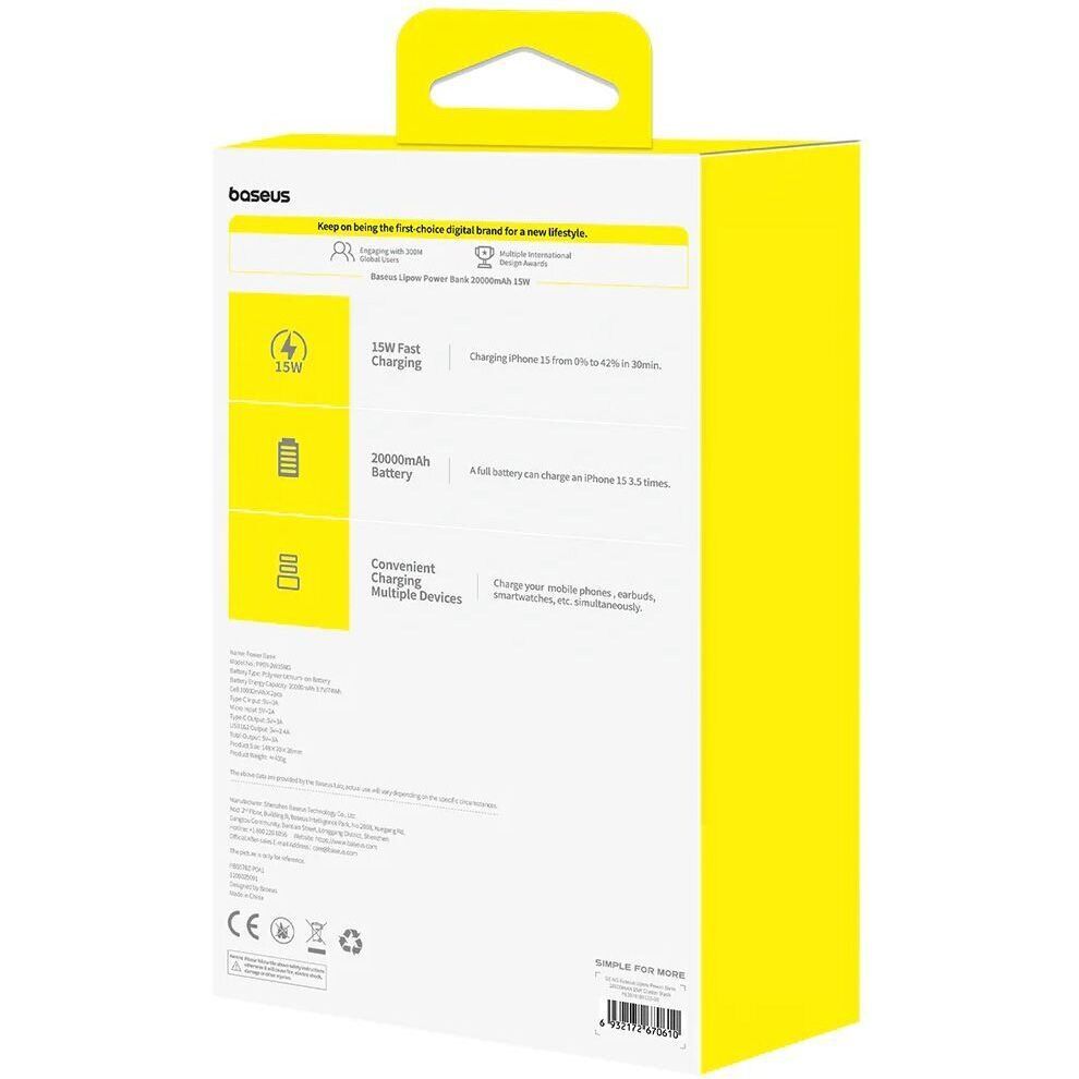 Внешний аккумулятор Baseus Lipow 20000mAh 15W Black (P10079100113-00)