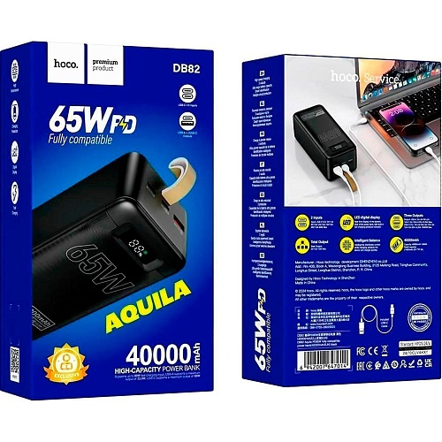 Внешний аккумулятор Hoco DB82 Aquila 40000mAh 65W Black Витрина