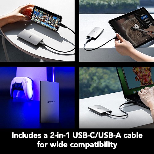 | Комплектация | Внешний SSD накопитель • кабель USB-C - USB-C • переходник USB-C - USB-A • документация |