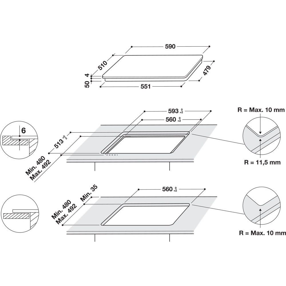 | Размеры | 590 х 510 мм (варочная поверхность) • 560 х 480 мм (монтажные размеры) |