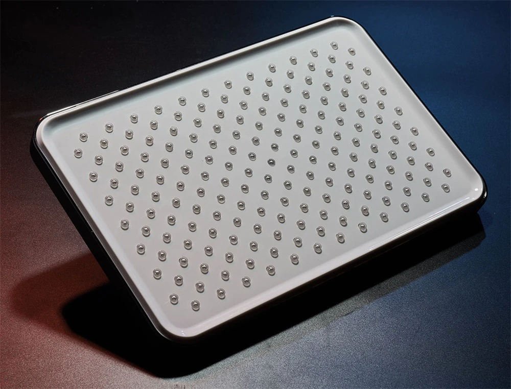 Душевая лейка имеет прямоугольную сглаженную форму и диаметр 13 дюймов, что дает ей преимущество перед многими моделями. Водные процедуры с использованием душевой лейки DIIIB отлично имитируют тропический дождь или водопад. Получаемый эффект от принятия такого душа усиливается, оказывая легкий расслабляющий массаж всему телу.
