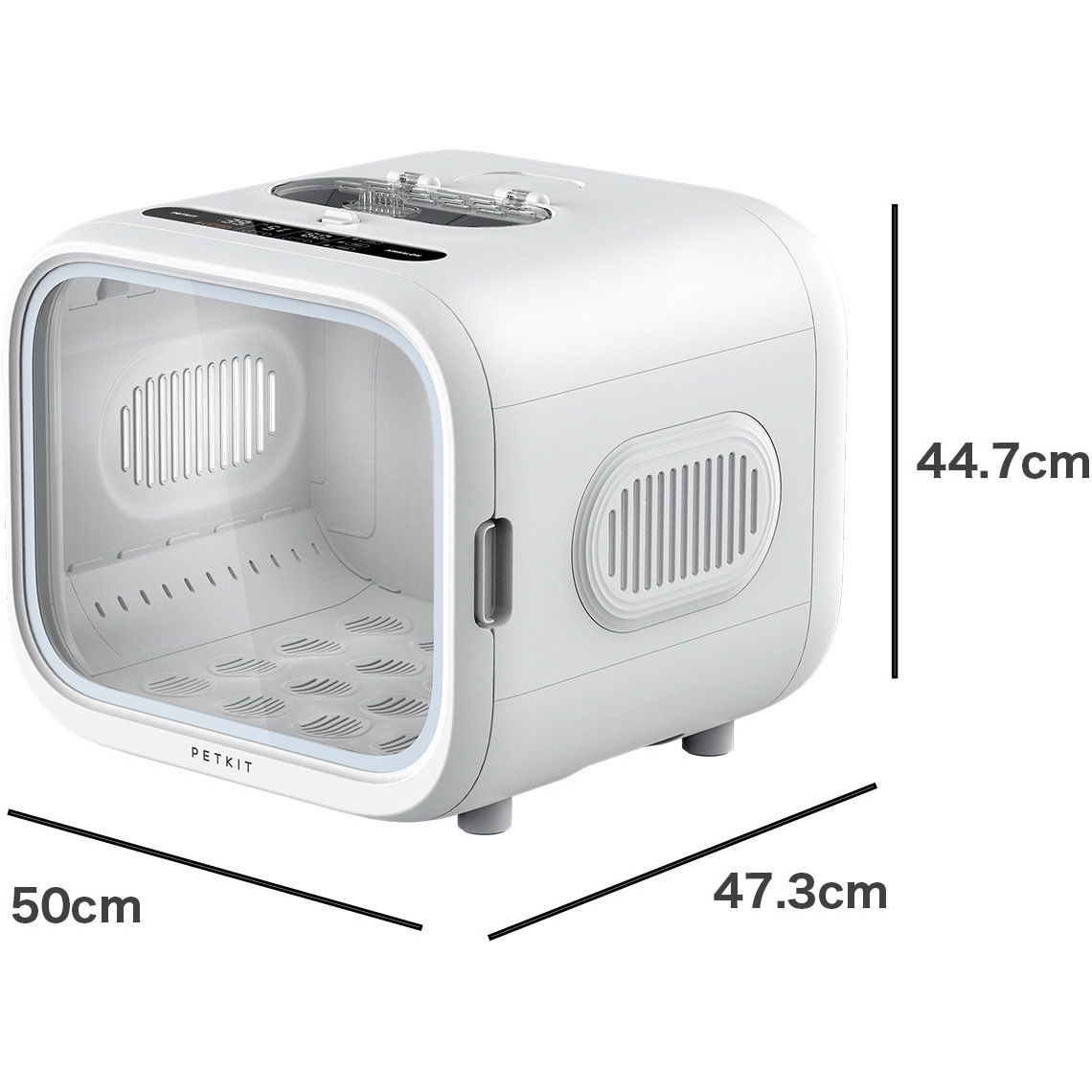 Объем сушилки в 60 литров позволяет разместить двух кошек среднего размера или одного более крупного питомца. Внутреннее пространство размером 47х37х35 см создает комфортные условия для движения или отдыха во время сушки. Благодаря этому Petkit AirSalon Max Pro подходит даже для владельцев крупных пород кошек или семей с несколькими животными, сохраняя эффективность и удобство.