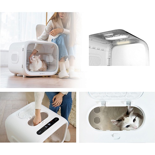 Еще одним преимуществом является простота ухода за сушилкой: внутренние панели легко снимаются для очистки, что позволяет быстро убрать шерсть или капли воды. Приложение Petkit помогает контролировать продолжительность сушки, а оптимизированный дизайн вентиляторов и потоков воздуха уменьшает накопление пыли и шерсти внутри. Это делает устройство не только эффективным, но и удобным в ежедневном пользовании, сохраняя время и силы хозяина.