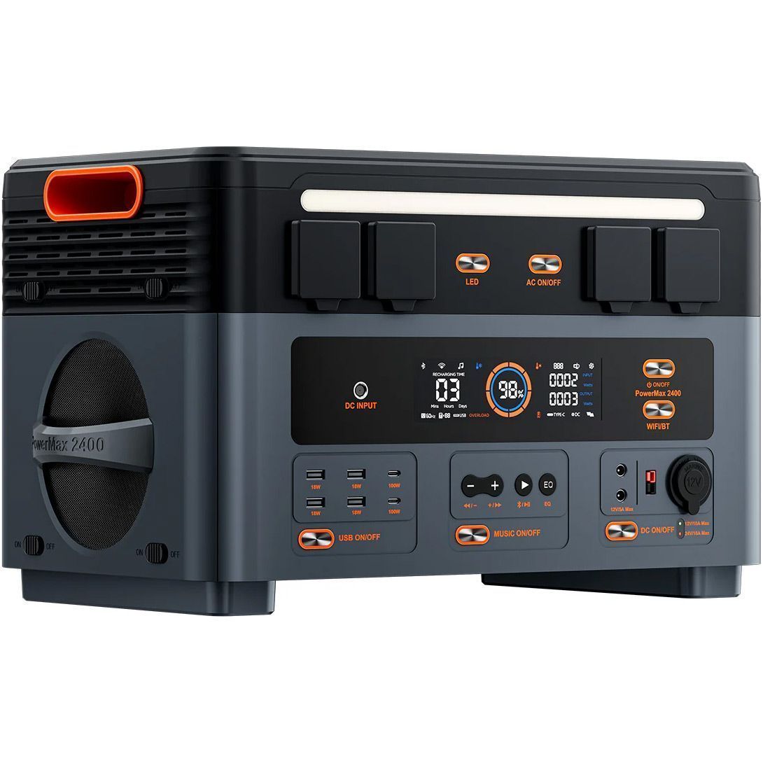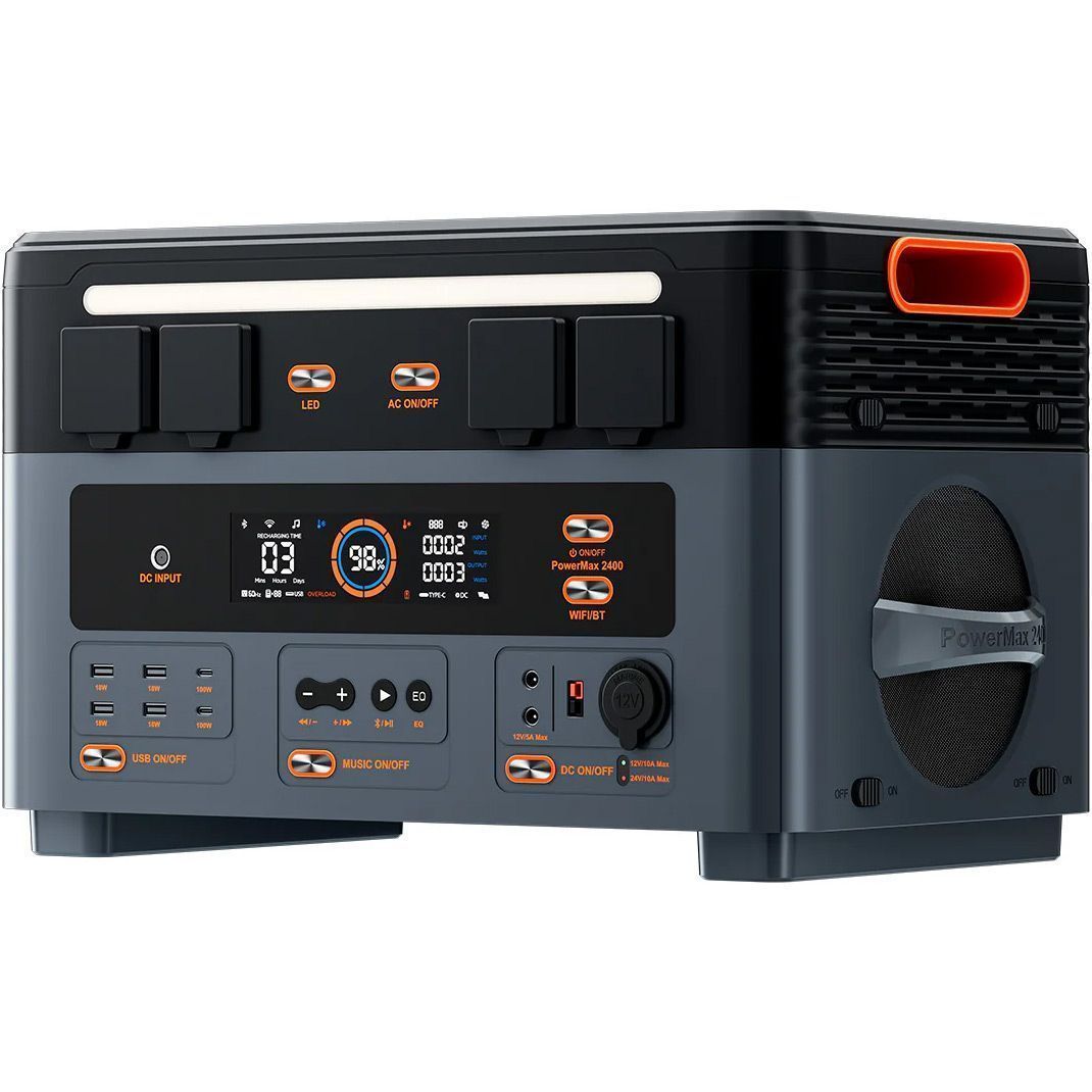Мощный выход 2400 Вт позволяет зарядной станции поддерживать работу 99% домашних приборов — от холодильника и кондиционера до электроинструментов и зарядки электромобиля. PowerMax 2400 идеально подходит для кемпинга, работы на открытом воздухе и аварийных ситуаций. Она обеспечивает надежное питание везде, где это нужно, работая тихо, стабильно и без сбоев.
