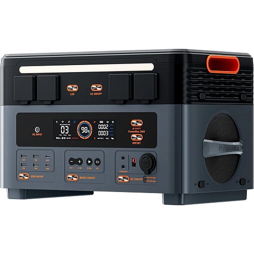 Зарядная станция PowerMax 2400 не только питает ваши устройства, но и создает атмосферу благодаря встроенным динамикам. Комбинация сабвуфера 25 Вт и твитера 10 Вт наполняет пространство глубокими басами и чистыми высокими частотами. Наслаждайтесь любимой музыкой где угодно — на природе, дома или во время работы. А в чрезвычайных ситуациях мощные динамики помогут привлечь внимание благодаря громкому и чистому звучанию.
