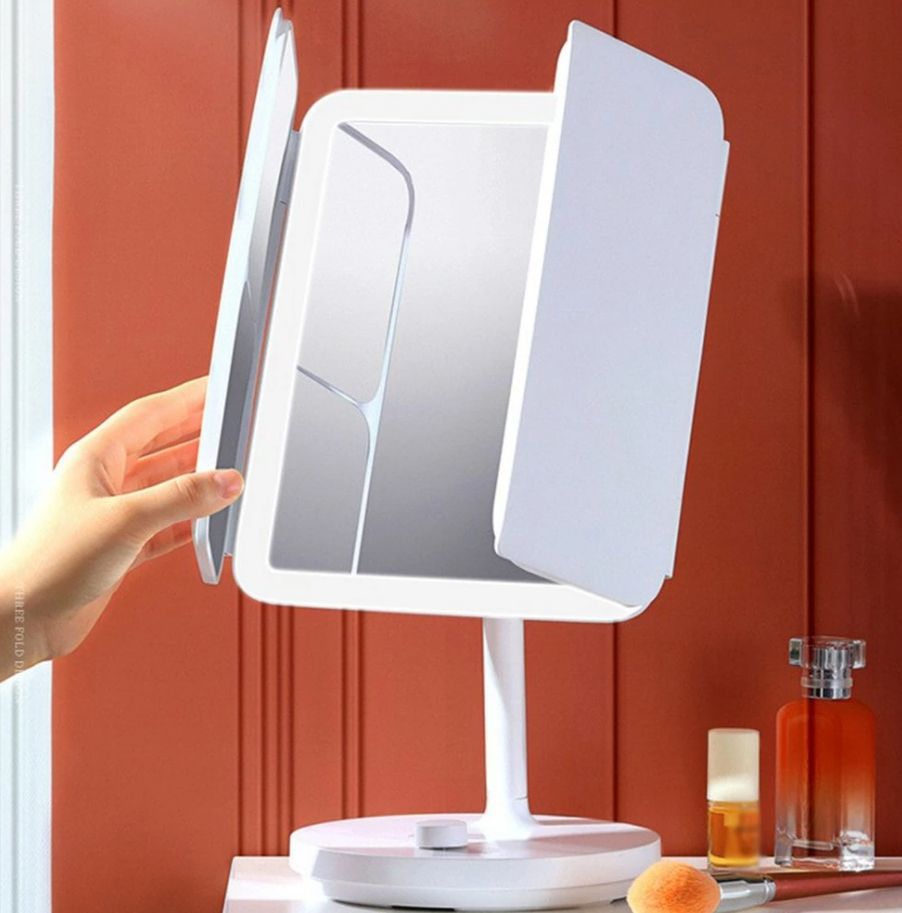 В макияже и уходе за собой - свет также важен, как и в фотографии или кино! Поэтому во всех фильмах мы можем наблюдать большое количество лампочек вокруг зеркала в гримерной у артистов. А вот в наших домах часто не хватает освещения, тем более что общий свет не подойдет для нанесения безупречного качественного макияжа - здесь очень важен именно точечный свет. Удобное настольное зеркало с подсветкой Xiaomi Jordan Judy Folding Make-up LED Mirror разработано инженерами Xiaomi именно исходя из этих особенностей повседневной жизни. Гаджет спроектирован так, что никакая область вашего лица не останется не освещенной, так как по всему периметру главного зеркала расположены светодиоды.