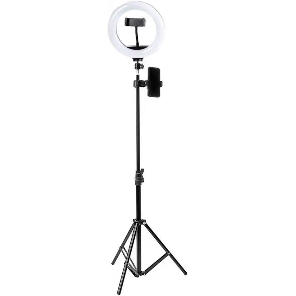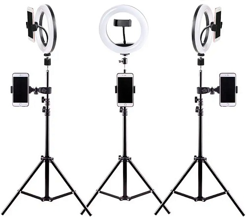 Комплектація | Кільцева лампа • шарнірна головка • штатив • тримач телефону на гнучкій ніжці • тримач для телефону з кріпленням на трубу |