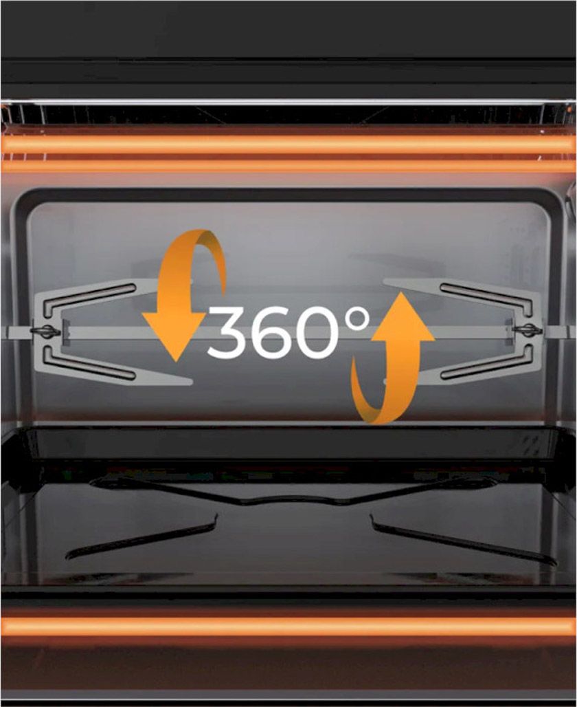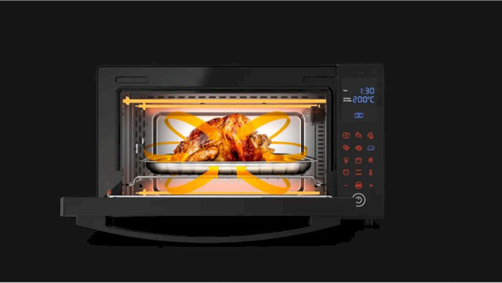 Технологія конвекції дозволяє гарячому повітрю циркулювати всередині духовки, забезпечуючи швидке та рівномірне приготування страв. У комплекті поставляється рожен, який забезпечує обертання продуктів та рівномірне обсмажування з усіх боків. Готуйте шашлик, рибу або курку-гриль з мінімальною кількістю олії або без неї.
